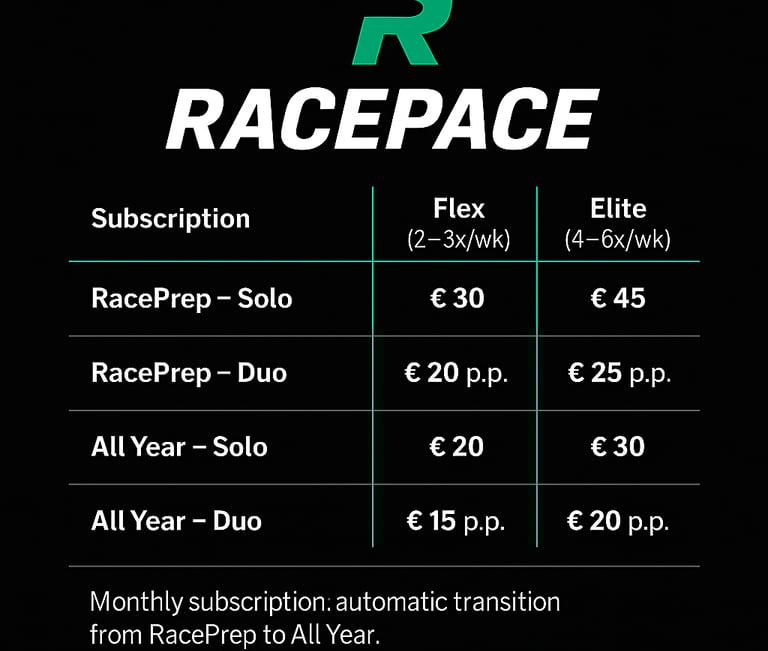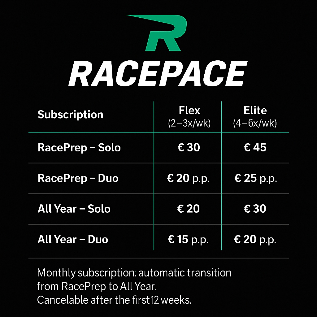 Het hele jaar door fit en vormbehoud, zodat je raceready blijft. 2-3 trainingsdagen per week